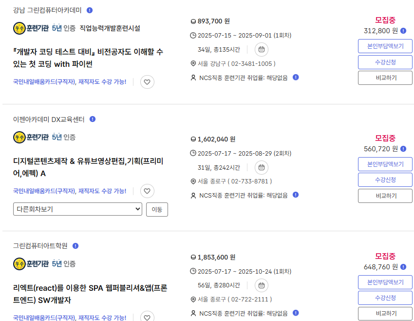 🎓 국민내일배움카드로 배우는 AI·IT 훈련과정 (서울)