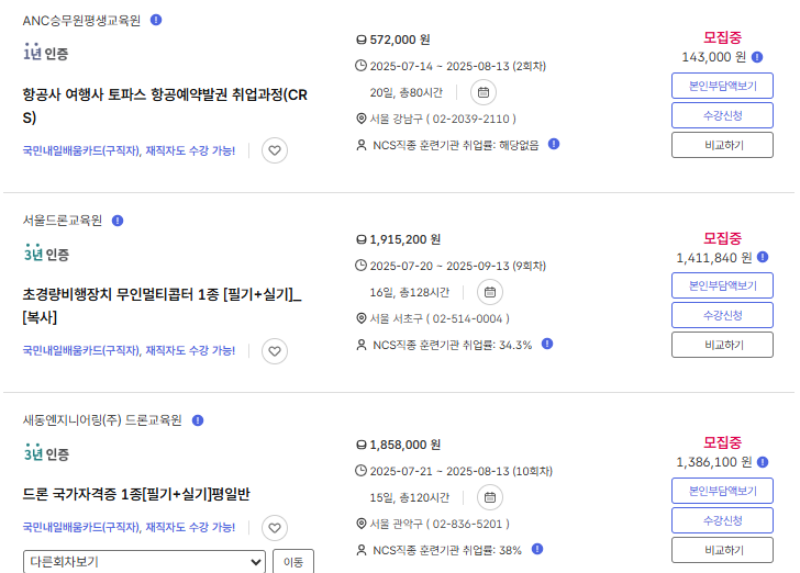- 수강료 일부 또는 전액 지원 후 훈련 수강